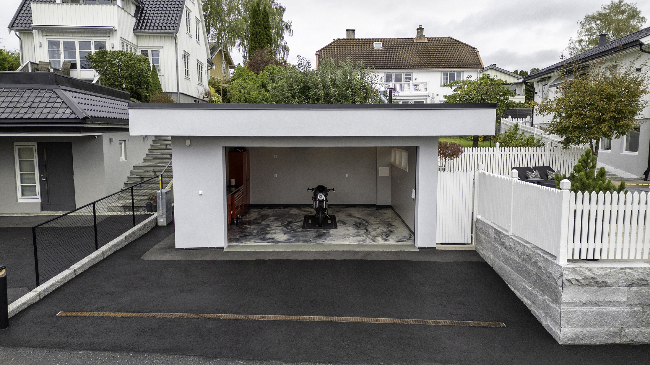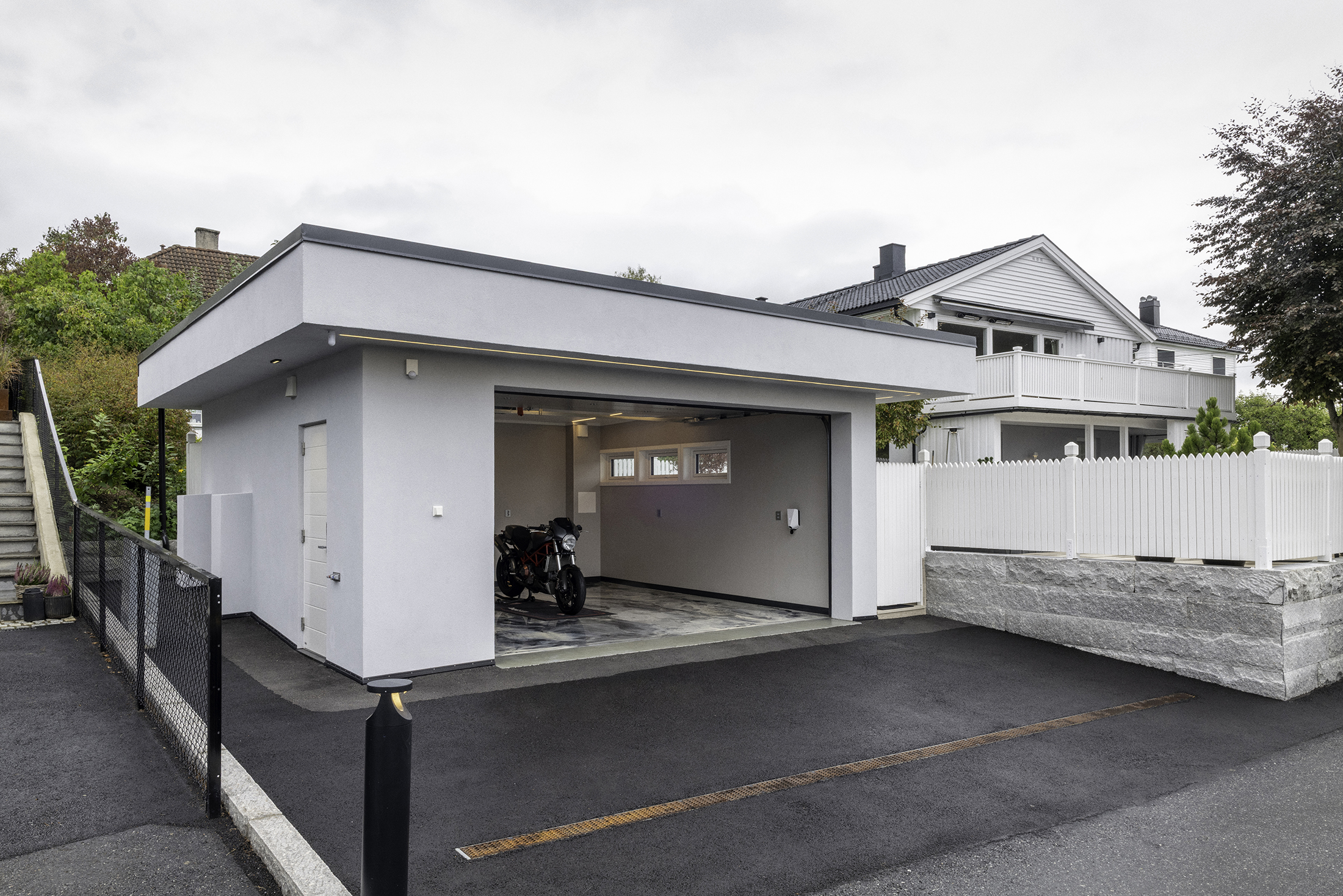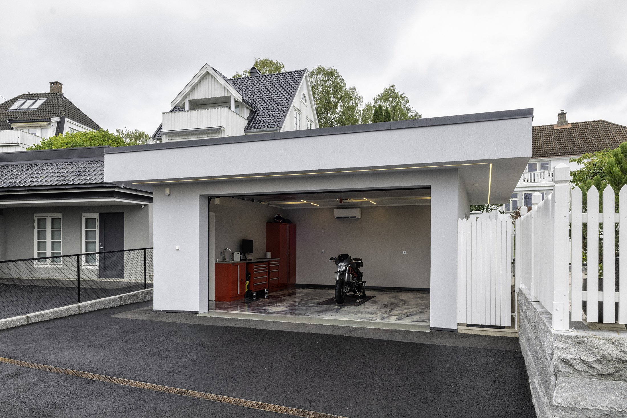 Prosjektet omfatter omfattende ombygging av bolig, spesialtilpasset garasje, moderne sauna og komplette baderomsløsninger.